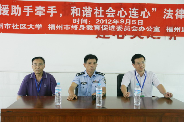 9月5日下午,由福州市社区大学、福州市终身教育促进委员会办公室、福州职业技术学院公共基础部、福州监狱联合举办“法律援助手牵手,和谐社会心连心”法律援助进监狱活动。 福州市社区大学、福州职业技术学院吴发水副教授首先作了《法律援助条例解读》专题知识普及讲座,接着,由福州职业技术学院公共基础部教师组成的律师团队开展现场法律咨询与援助活动,并向服刑人员赠送了福州市社区大学自编《应用法律》校本教材等。 福州市社区大学开展法律援助活动,贯彻了“公民在法律面前一律平等”这一宪法原则的本质要求,也是依法治国、贯彻全心全意为人民服务宗旨的体现。本次活动普及了法律知识,帮助服刑人员深刻认识其违法犯罪行为给社会、家庭带来的严重后果,解除困扰,卸下包袱,从而轻装上阵,彻底改造自己的思想,以实际行动力争获得宽大处理。