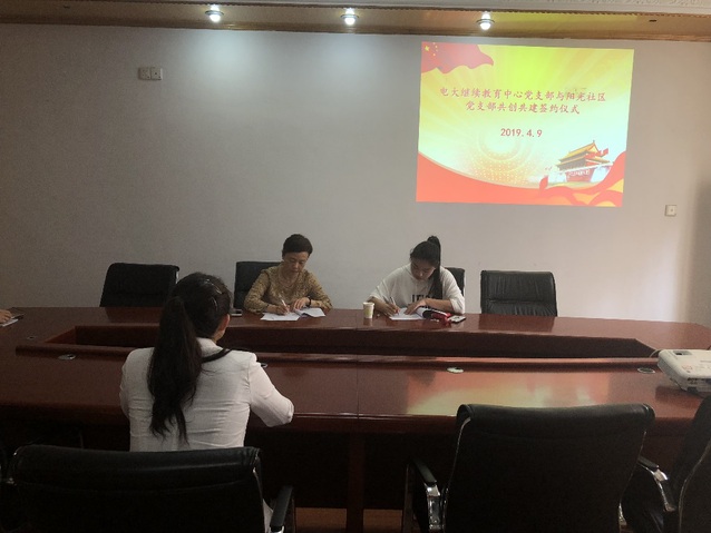 为全面贯彻习近平新时代中国特色社会主义思想和党的十九大精神,加强新时代基层党支部建设。 4月9日下午,电大继续教育中心党支部与阳光社区党支部结对共创共建签约仪式在福州电大会议室举行。电大继续教育中心党支部支部书记郑鸿以及全体委员和阳光社区党支部书记齐可雯一行参加了签约仪式。