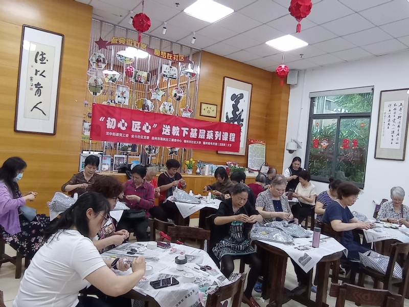2021517日,福州市社区大学、福州老年开发(互联网)大学开展的“初心·匠心”送教下基层系列课程之“手工(丝网花技艺)在金斗社区开课。课程安排在每周一下午300——4:30,将连续开展12次课程教学。
