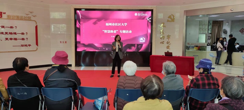 1110日,福州市社区大学在金洲社区开展智慧助老专题讲座,由福州市社区大学师资库陈丹老师为老年朋友授课。讲座中,陈老师讲解了智能手机的基本操作,并向老年居民推荐福州市社区大学微信小程序端线上课程资源,引导老年人通过智能技术手段进行线上学习。