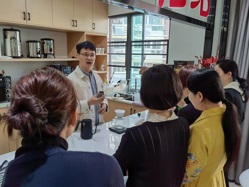 社区大学师资库成员陈德明老师为大家带来一堂“咖啡品鉴与制作”课程,讲解了咖啡的来源发展等知识,并展示了咖啡研磨、冲泡、打奶泡、拉花等步骤内容。师资库成员教师们观摩了课堂教学,也体验了制作手冲咖啡,咖啡品鉴等项目。