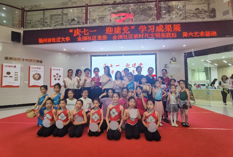 为庆祝中国共产党成立101周年,更好营造福州市全民终身学习氛围,不断提升社区教育的内涵和品质,集中展示社区居民参与终身学习的风貌和热情,支持和鼓励更多居民参加社区学习,7月1日,由福州市社区大学、金洲社区主办,舞六艺术基地承办的福州市社区大学金洲社区直属教学点学习成果展示活动在金洲社区成功举行。