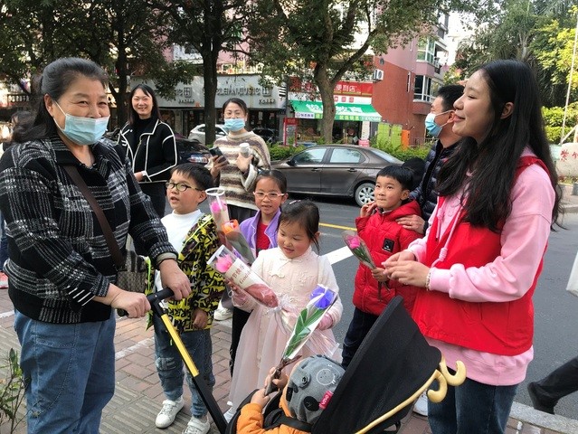 福州市社区大学开展“暖春三月学雷锋——丝网花义卖”活动