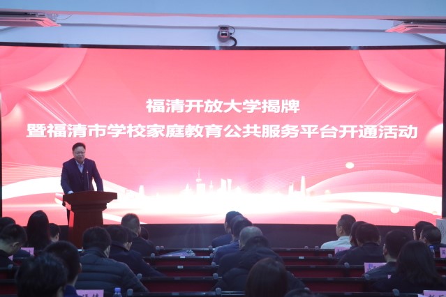 124日,福清开放大学揭牌暨福清市学校家庭教育公共服务平台开通活动在福清市教师进修学校举办。福建开放大学校长吴国荣,我校校长陈念东,福清市市长吴永忠、副市长郑云、教育局局长王豪杰等为福清开放大学揭牌,并启动福清市学校家庭教育公共服务平台。