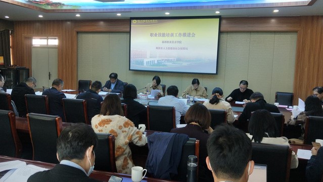 1122日,学校召开职业技能培训鉴证工作推进会。张兰英副校长主持会议,闽侯人社局职建科科长陈斌等三位同志、学校各系部负责人、培训鉴定联络人参加会议。