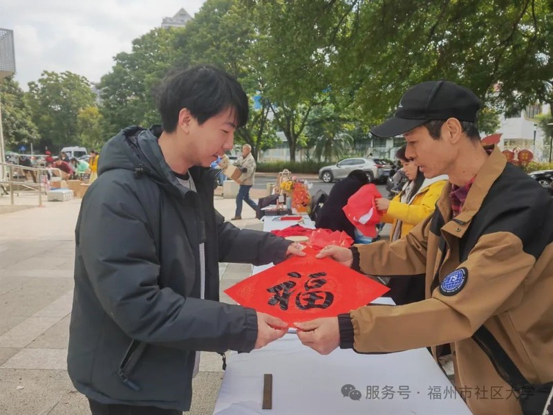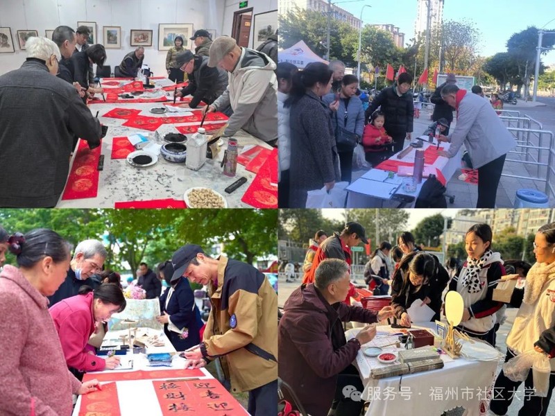新春佳节来临之际,福州市社区大学在福瑞社区、建岭社区、金洲社区及烟山画院等地成功举办了迎新年“福文化”宣传活动,为社区居民送上温馨的新春祝福。系列活动聚焦弘扬与传承“福”文化,活动现场,福州市社区大学师资库的书法老师们满怀热情,挥毫泼墨,创作出一幅幅精美的春联和福字作品。作品采用行、楷、隶、草等多种书体,每一笔每一划都传递出浓浓的年味与美好的祝福,为即将到来的新春佳节增添了浓厚的喜庆色彩。
