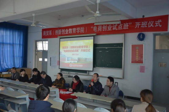 为了提高学院创新创业办学水平,使学生能够更快、更好地适应社会发展的需求,完成福建省示范性院校的建设任务,商贸系决定引入企业资源,组建“电商创业试点班”,开展创业培训及创业孵化。学院沈锦华副书记、欧阳少鸣副院长率双创办刘春兰主任莅临创新创业教育学院“电子商务创业试点班”开班仪式。商贸系林艺芳副书记(主持)、林贤福副主任(主持)、福州览持电商有限公司陈攀崎总经理、电商教研室林剑谊主任与双创教研室舒良荣主任等老师、企业方代表及62位“试点班”学生出席此次开班仪式。