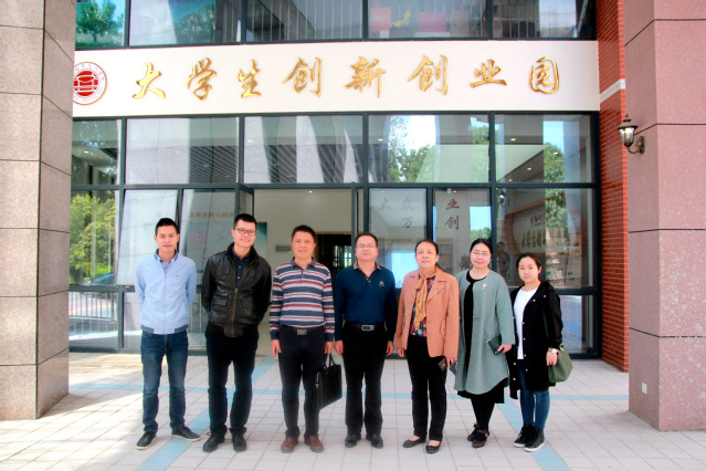 闽西职业技术学院一行与我校相关人员在大学生创新创业园前合影