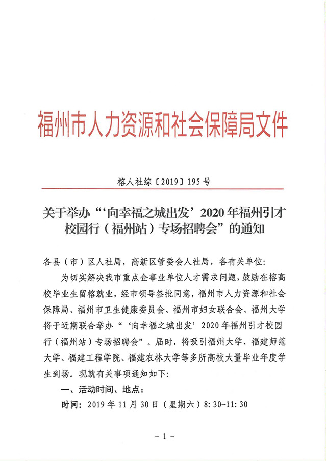 关于举办“‘向幸福之城出发’2020年福州引才校园行(福州站)专场招聘会”的通知
