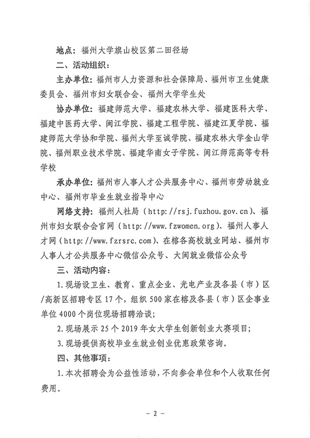 主办单位:福州市人力资源和社会保障局、福州市妇女联合会、福州大学学生处