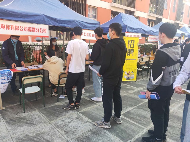 此次招聘会严格按照疫情防控的要求,经过前期的广泛宣传和认真筹备,学院与用人单位多次沟通,严格审查进校招聘人员,最终确定了包括日立电梯福建分公司、福州市海峡国际会展中心等34家知名企业参会,提供了近500个就业岗位。毕业生手持自己精心准备好的自荐书和简历,积极与招聘人员交流,主动了解用人单位的情况,招聘会场流程高效、井然有序。