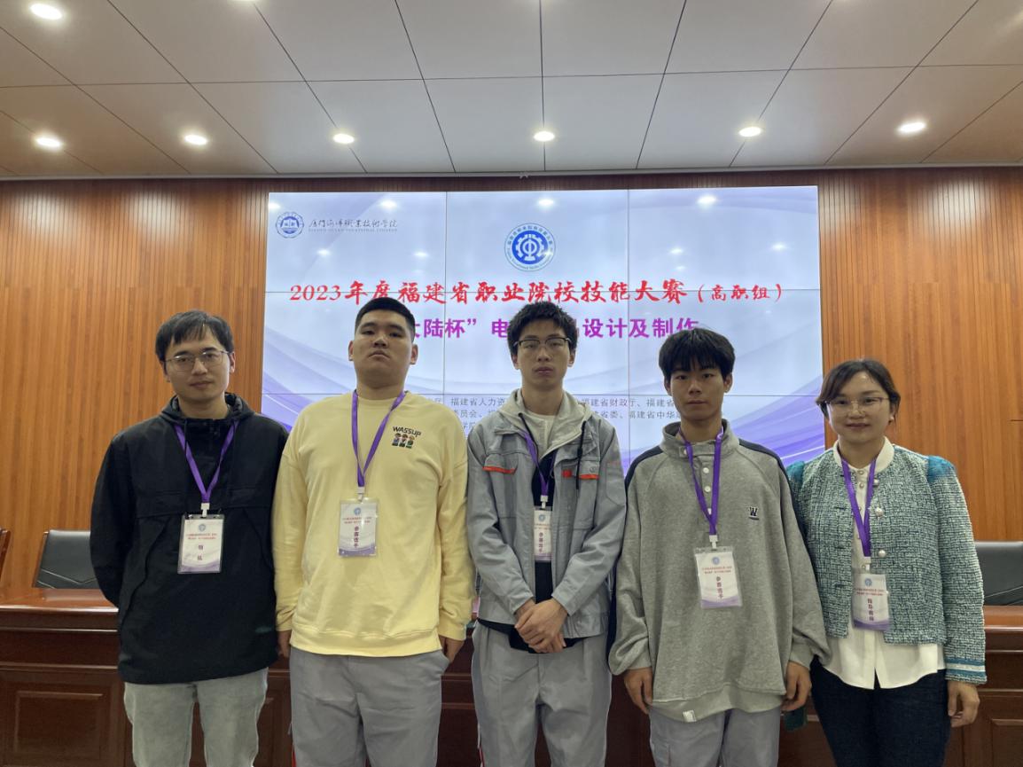 2023年福建省职业院校技能大赛(高职组)“电子产品设计及制作”赛项于2023年3月24日在厦门海洋职业技术学院举行,我校智能工程系戴彬清、王诗豪、谯胜虹等3位学生在刘正翔、黄凌霄两位老师的指导下,从全省26支队伍中脱颖而出,荣获二等奖的好成绩。