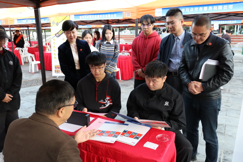 招聘会现场设立就业政策宣传工作点、征兵政策宣传站、重点企业宣讲会,邀请专任教师、退役复学学生、创新创业获奖学生、毕业校友现场指导,有效满足学生应聘的需求。