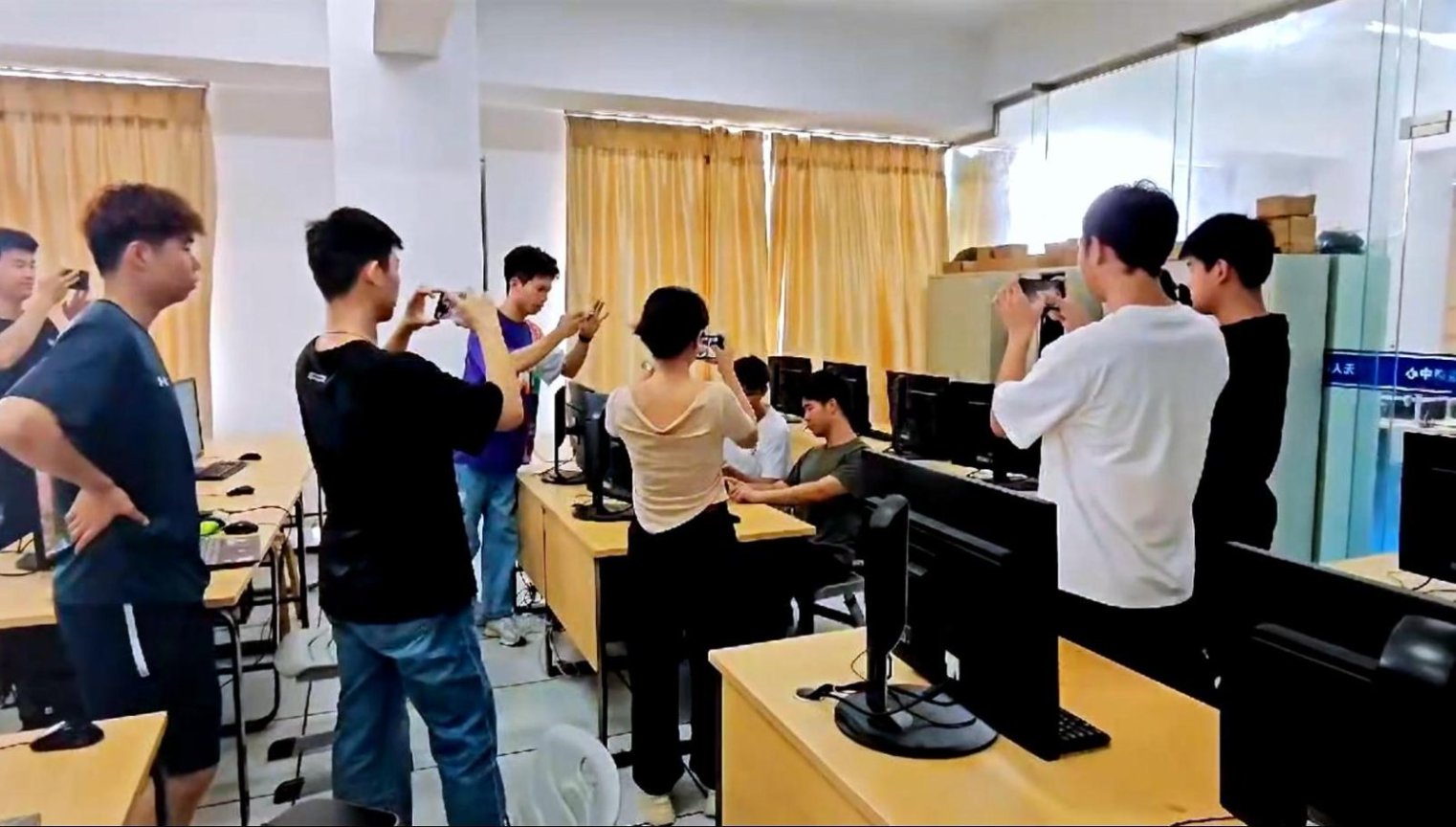 学员和老师一起拍摄视频