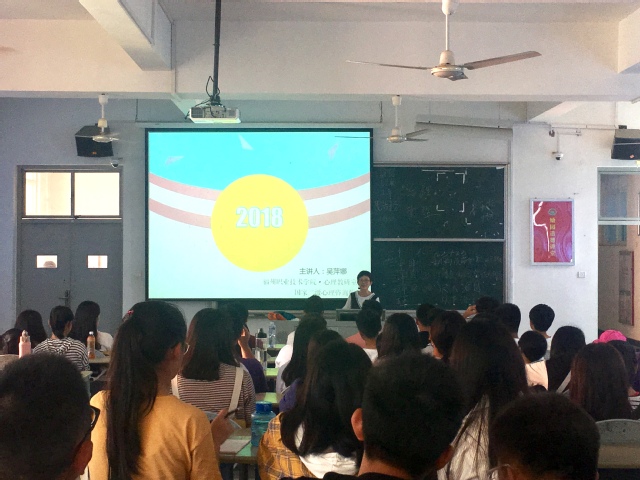 吴萍娜老师用一个拍手测试默契的游戏作为讲座的开创,活跃了现场气氛。随后她抛出问题“大学之大,大在哪些地方?”,引导同学们的积极讨论,激发大家对大学校园的思考,进而尝试对自己即将开启的大学生涯进行长期规划。讲座中,吴萍娜老师还用了木桶定理,马云、俞敏洪的典型成功案例,来引导告诉学生在大学生活中需要抓住每一次发言的机会,鼓励学生战胜恐惧,摆脱恐惧,走出自卑。