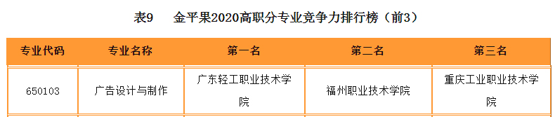 5月6日,“金平果”首次发布“2020高职分专业竞争力排行榜”,我校广告设计与制作专业在全国同类专业测评中取得全国第二名成绩。