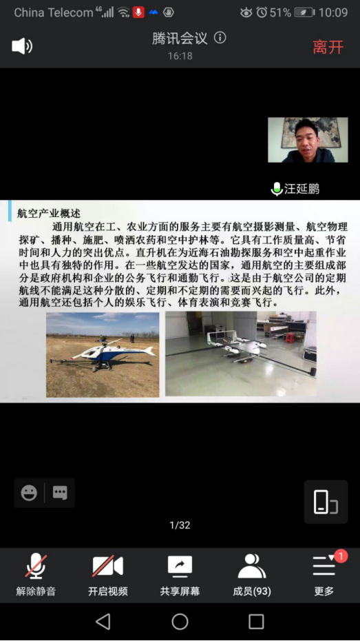 汪延鹏总经理的讲座主要包含航空产业包含范围、航空产业就业前景、航空产业各分专业整体薪资待遇等三个主要部分。通过对企业、地区、产业等实际案例进行分析讲解,为学生介绍了航空产业的现况和前景,最后通过与学生的互动交流顺利结束活动。
