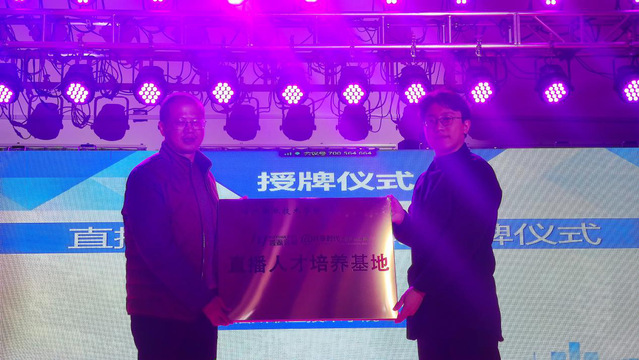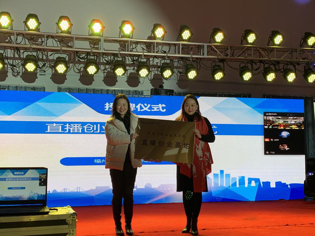 文化创意学院林东院长向福建荟源公司授牌——直播人才培养基地。