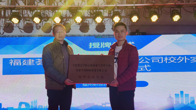由文化创意学院林东院长向福建荟源公司授牌——校外实训基地。