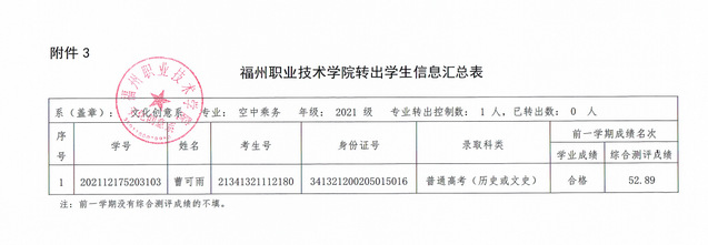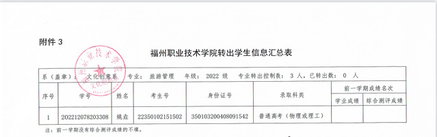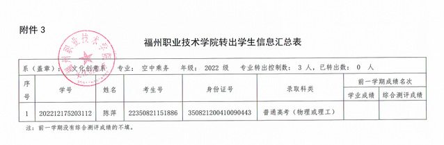 福州职业技术学院转出学生信息汇总表