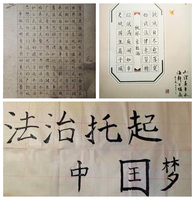 活动中,我系采用集中学习与自主学习相结合的方式,在全体教职工中重点宣传习近平法治思想的重大意义、核心要义,特别是关于宪法的重要论述,以及《教育法》《职业教育法》《教师法》《新时代高校教师职业行为十项准则》等法律法规,切实增强教师队伍的法治意识与法律素养。组织学生参观法治宣传图板、召开主题班会,加强对宪法、民法典、国家安全法、网络安全法等法律的学习,结合案例分析、现场互动等形式,让大家了解掌握自我保护、防范不法侵害、预防电信网络诈骗、校园欺凌等知识技能,提高遵纪守法意识。此外,号召全系学生积极参加第八届全国学生“学宪法 讲宪法”活动之“宪法卫士”行动计划,争创“宪法卫士”,并结合自身专业特色,围绕活动主题自行设计手抄报、海报、书法作品等,讲述他们心中的宪法,让宪法精神根植到每个人的心中。