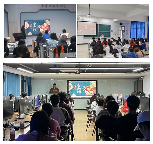 10月23日,各班级组织开展重阳节主题班会课,依托宣传片等图文并茂地讲解重阳节的来历及各地的重阳习俗,了解和感受中华传统节日文化,认识到尊老、敬老、爱老的重要性。班会后,大家不约而同地拿起电话同家中父母长辈道一声问候,并亲手制作包含美好寓意的贺卡,向父母长辈表达敬意,送上最真挚的祝福。此外,同学们还发挥专业特长,积极制作重阳节主题海报,营造浓厚的宣传氛围。