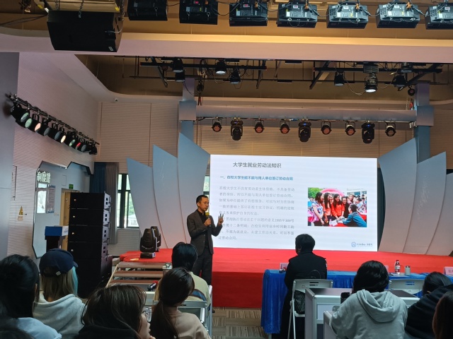 宣讲会上,陈玲女士向同学们介绍了创业援助政策、就业援助政策以及公共服务政策;李仁涓先生向同学们介绍了大学生就业劳动法知识、保密与竞业限制以及风险防范。在互动环节中,气氛和谐、热烈,同学们踊跃发言,向嘉宾们提出了自己临近就业或意向创业所遇到的困难与困扰。嘉宾们则耐心为同学答疑解惑。