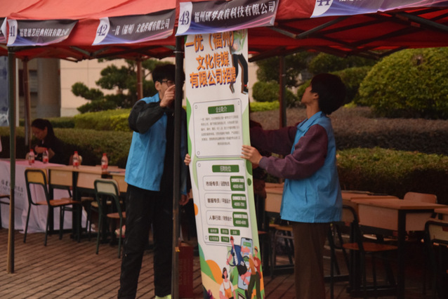 活动前期,志愿者依据专业有效分工,积极对接参会企业了解情况,绘制企业招聘信息汇总表,共有60余家企业进校招聘。招聘会前一晚,志愿者利用课余时间布置现场,搭建帐篷,摆放桌椅,悬挂企业名牌,为招聘会的顺利举办奠定基础。活动期间,志愿者负责引导毕业生前往心仪企业展位,维持现场秩序,解答同学疑惑,为此次招聘会推波助澜。招聘会结束后,志愿者主动作为,打扫现场,做到干干净净,片纸不留。