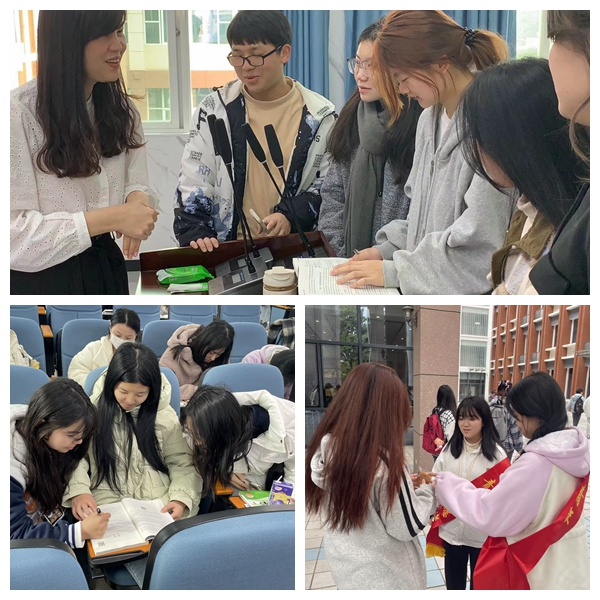 在学风督导方面,我院组织学生志愿者深入教学楼对学生迟到及带餐进教室等问题进行督导;在学业帮扶方面,学院安排专业教师对学业困难的学生答疑解惑,系团总支发起“朋辈辅导”活动,在学生之间开展一对一学业辅导;此外,我们邀请国家励志奖学金获得者邱意萍同学为低年级学生开展学习经验分享会,形成榜样效应。