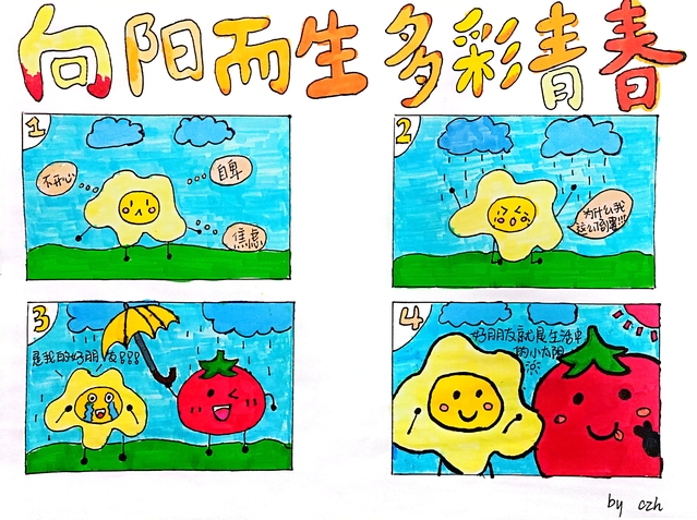 一次主题漫画活动:开展“向阳而生 多彩青春”心理漫画原创作品大赛。活动中,同学们结合自身专业特长,围绕学习成长及工作生活中的心理话题,用绘画的方式表达自己对心理健康的理解和感悟描绘出多彩的青春生活。惟妙惟肖的绘画作品充分表达了同学们丰富的内心世界和情感生活,引导大家积极宣泄与释放学业和生活中面临的困惑与压力,增进人际沟通与交流,收获内心的平和与勇往直前的力量。