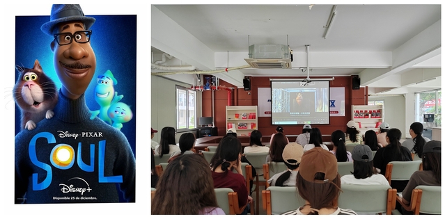 一次主题观影活动:开展“悦纳自我 感恩生活”心灵鸡汤观影活动。《心灵奇旅》这部奇幻动画电影所展现的精美动画和隽永哲思,引发了同学们对生活本质和追求梦想的意义的深度思考,引导大家要珍惜当下,用心去体验和感受生活的每一个瞬间,勇敢面对未知,坚持追求自己内心真正渴望的东西,在不断探索中捕捉心灵成长历程,寻找自己的人生价值和意义。