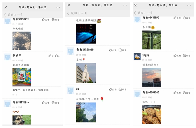 一次主题打卡活动:开展“感心灵 享生活”线上打卡分享活动。活动中,同学们通过“今日份开心、今日份焦虑、………”等来记录自己当下的心情,借助打卡圈作为自身情感的宣泄口,尽情诉说心语、表达情绪、释放压力、感受美好,引导大家学会积极主动的自我觉察、关注自己,更好地做情绪的主人,营造乐观积极的心理氛围。