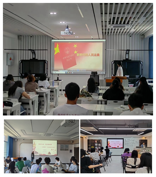 此次活动围绕“美好生活,民法典相伴”主题,通过教职工理论学习、主题班会、知识竞答以及普法宣传海报制作等多种形式开展,推动民法典学习宣传教育走深走实。一是组织全体教职工认真学习习近平法治思想和《中华人民共和国宪法》《中华人民共和国民法典》等相关的法律法规和政策,深入学习领会国家编纂《中华人民共和国民法典》的重大意义、总体要求、基本原则和精神实质,进而深入理解民法典在现代社会中的重要作用;二是组织各班级召开“民法典进校园”主题班会,依托图文、案例讲解等方式,让同学们知晓民法典的编纂历程、内容构成,结合身边的典型案例帮助大家更好地理解生命权、姓名权、隐私权、人格权等概念,并通过观看《中华人民共和国民法典》公益宣传片及相关的普法动漫、短视频等,让大家深刻认识到《中华人民共和国民法典》与社会生活的密切关系。三是在易班微社区开展民法典知识竞答活动,准备竞赛的过程中同学们更好地理解和把握《中华人民共和国民法典》在我国立法体系中的重要性及其主要内容、特色和亮点,营造了宣传学习民法典的浓厚氛围