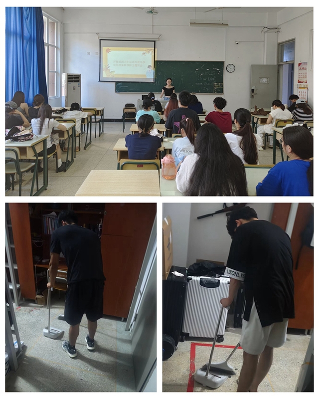活动期间,各班主任、辅导员们深入学生宿舍,指导同学们做好宿舍卫生大扫除,美化生活环境,共同营造干净舒适的寝室环境,积极创建清馨宿舍。并叮嘱同学们要自觉遵守宿舍各项管理规定,提升安全意识,特别是消防和用水用电安全,共建安全、和谐的宿舍环境。此外,依托主题班会以及班级QQ群、微信群等线上平台,及时推送秋冬季常见传染病相关知识,图文并茂地介绍了流行性感冒、肺结核、水痘、猴痘、诺如病毒感染等常见传染性疾病的传播途径、症状表现及预防措施,切实增强师生们防范常见传染性疾病的意识,引导其养成良好卫生生活习惯和健康生活方式,做到防患于未然,筑牢健康防线。