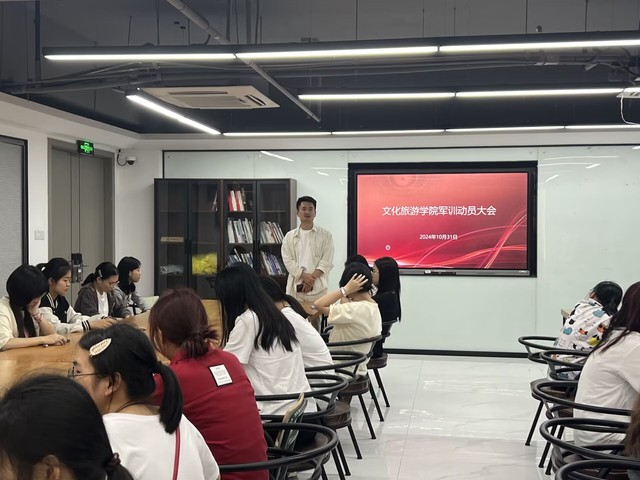 2024级新生大学军训即将开展,为了统一思想、鼓舞士气,确保每位同学都能以最佳状态投入即将到来的军训生活。10月31日晚,文化旅游学院在躬行社区召开了军训动员主题班会,此次会议由我院军训联络员屈的鹏辅导员主持。
