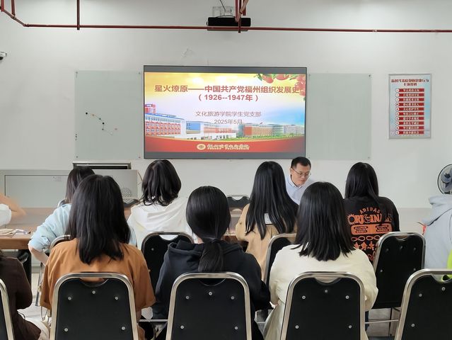 为深入学习党的光辉历史,从百年奋斗历程中汲取智慧和力量,文化旅游学院学生党支部联合文化旅游学院团总支于2025年5月26日下午,在学校爱心楼1014会议室成功举办了主题为《星火燎原——中国共产党福州组织发展史》的党课学习活动。支部师生党员及部分入党积极分子共同参与了此次学习。