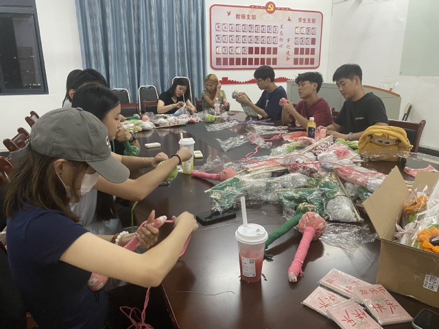 同学们巧妙运用色彩缤纷的扭扭棒,发挥艺术创意,集体制作了一束束永不凋零的手工花束。从花瓣造型到枝叶搭配,每一步都凝聚着同学们的巧思与敬意。这些绚丽的手工花,象征着老师桃李满天下的丰硕成果,也代表了学生对老师教诲的永恒感激,成为装点办公室、温暖教师心的亮丽风景,展现了学院和谐友爱的集体氛围。