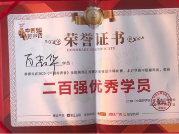 商学院18物流管理2班学生万志华,获2020年中国好声音江西赛区200强学员,2020年中国好声音抚州赛区第五名,2020年中国好声音金溪赛区第二名。(图文/许坤金)