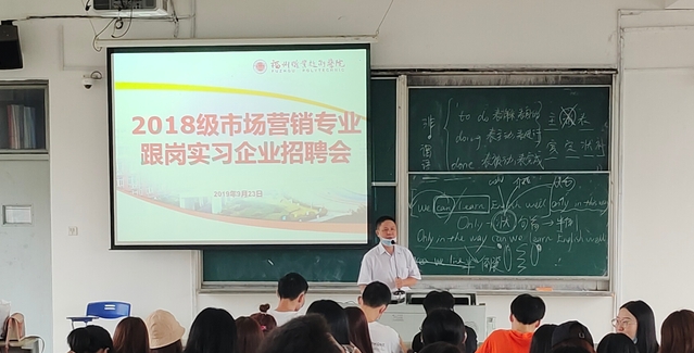 市场营销专业主任曾繁斌老师对同学们即将到来的实习和就业进行指导和勉励,希望大家能顺利实习。八家企业代表就自家企业的各项优势、招聘制度、用人标准以及福利等进行宣讲和介绍,同学们根据自己的意愿向企业递交简历进行面试。