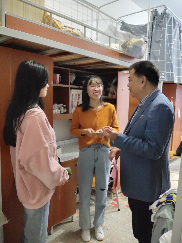 系党总支书记郭伟、副书记杨君带领商学院全体辅导员们前往学生宿舍,对学生宿舍的垃圾分类工作进行实地检查,指导学生在宿舍做好垃圾分类工作,并向为各宿舍分发垃圾分类宣传手册,倡议同学们要将垃圾分类融入生活中,落到实处。郭伟书记还根据宿舍环境,给予同学们垃圾分类工作具体的举措和建议,要求同学们要做好垃圾分类工作,为创建文明校园贡献力量。(图文/林欣)