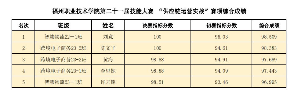为更好地推进岗赛课融合教学改革,发挥技能大赛对教学的助推作用,推动供应链人才培养工作,福州职业技术学院商学院分别于2024年11月6日、11月13日下午举办了福州职业技术学院第二十一届技能大赛“供应链运营实战”赛项的初赛和决赛。