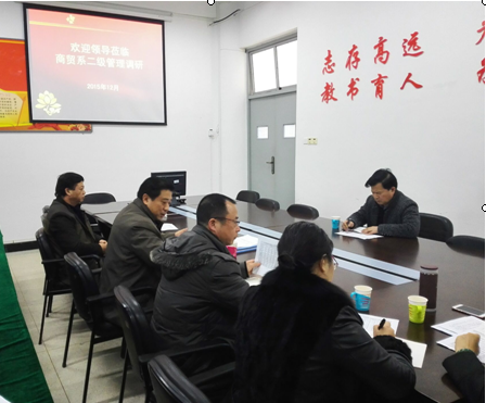 2015年12月22日下午,陈承茂书记带领院党工部、教务处、人事处、财务处等职能部门领导赴商贸系进行系部二级管理调研,商贸系党政班子、辅导员和秘书参加了调研座谈会。