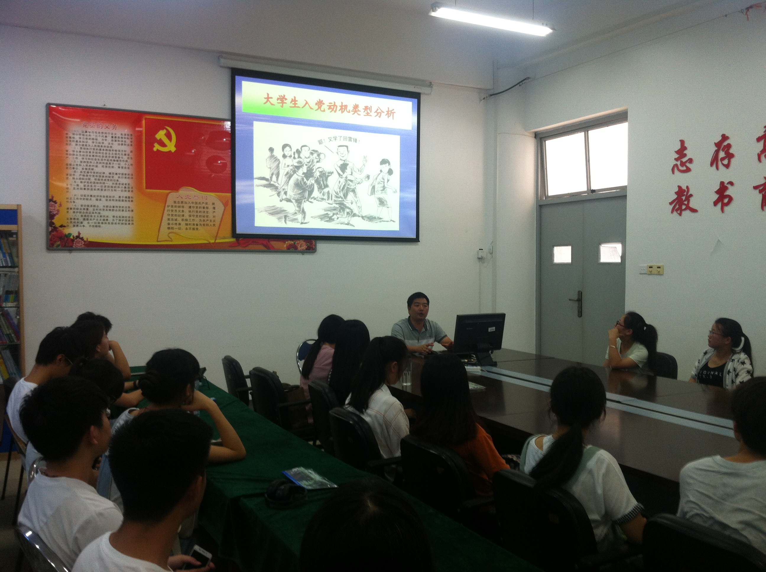 为了贯彻落实“两学一做”教育要求,深入推进“三好”中的党支部书记好党课,7月2日,商贸系教师党支部书记杨智华老师到学生党支部为27期党基班的25名入党积极分子讲授了一堂生动的专题党课。