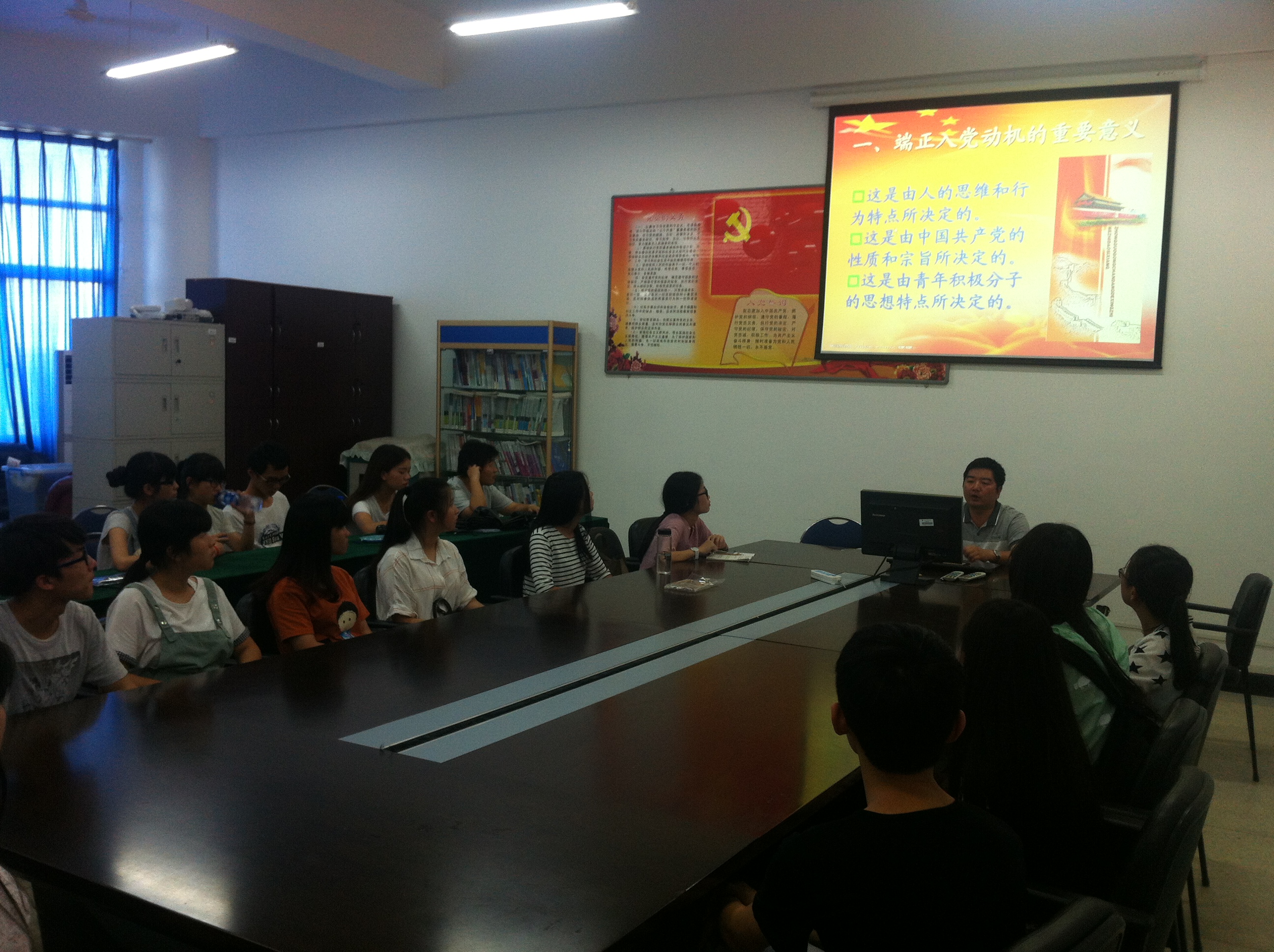 ,及青年学生在实现入党愿望以后,要不忘初心,继续不断加强自我修养,做到自我完善,做一名合格共产党员。整个党课内容丰富,气氛活跃,既有理论高度,又有思想深度;使全体参会的党积极分子受益匪浅,“上党课”活动收到了预期效果。
