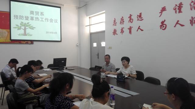 为进一步传达学院登革热防控工作会议精神,商贸系召集全体教职工于914日召开登革热防控工作会议,就登革热防控相关工作进行再部署,系党总支负责人主持会议。