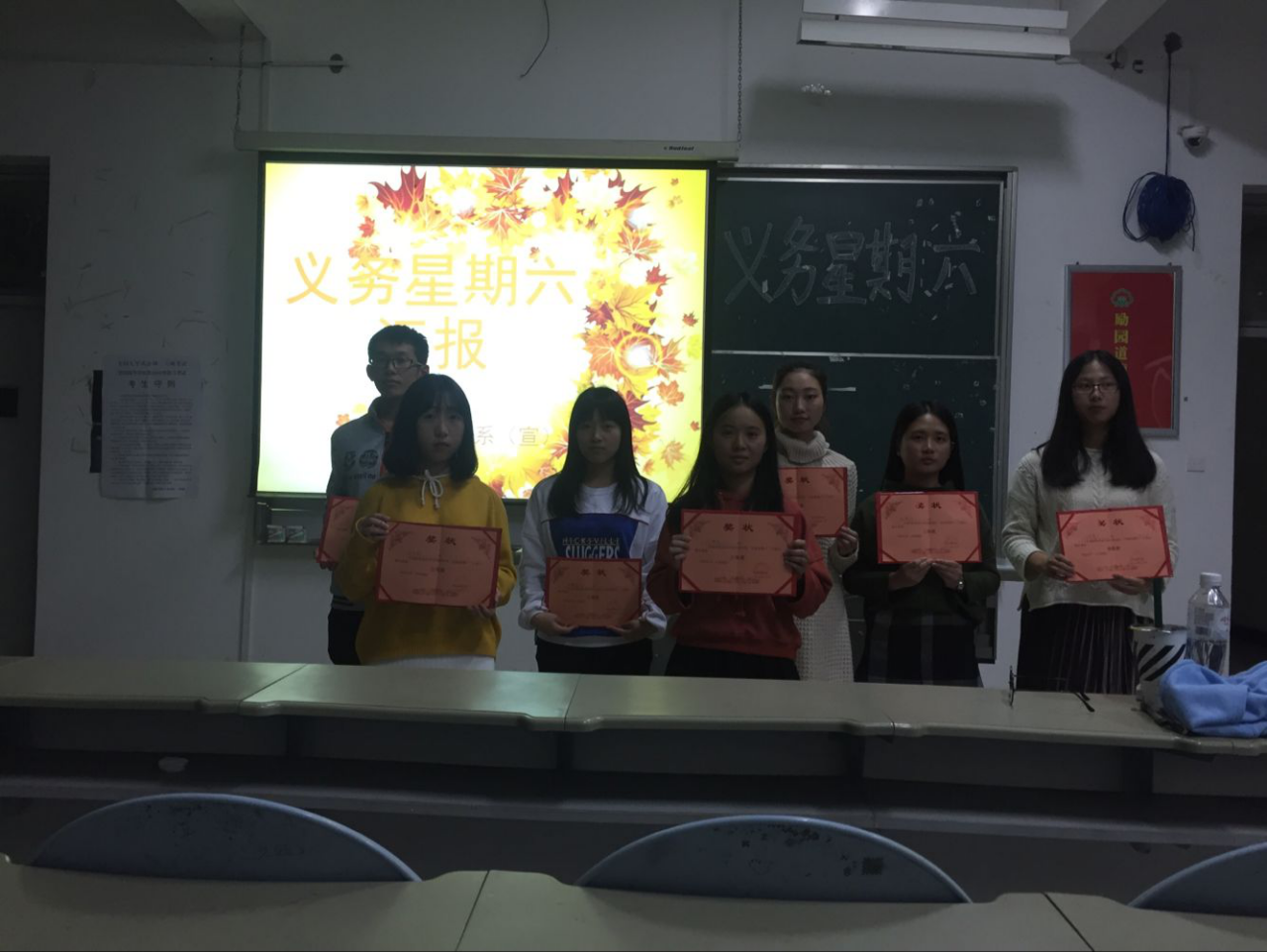 义务星期六活动作为第二课堂的重要阵地,提高同学们的实践能力,增强他们的使命感、责任感,充分展现大学生无私奉献的精神,为社会贡献自己的一份力量。(商贸系)