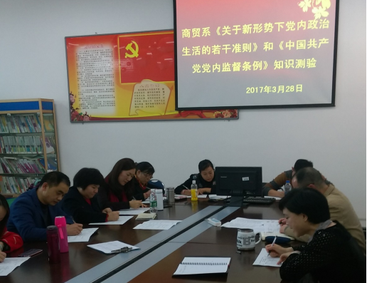 3月28日,商贸系党总支按照院党委部署,在组织党员逐章逐条地学习《准则》和《条例》原文基础上,采取闭卷形式再次组织开展了党员《准则》、《条例》知识测试。