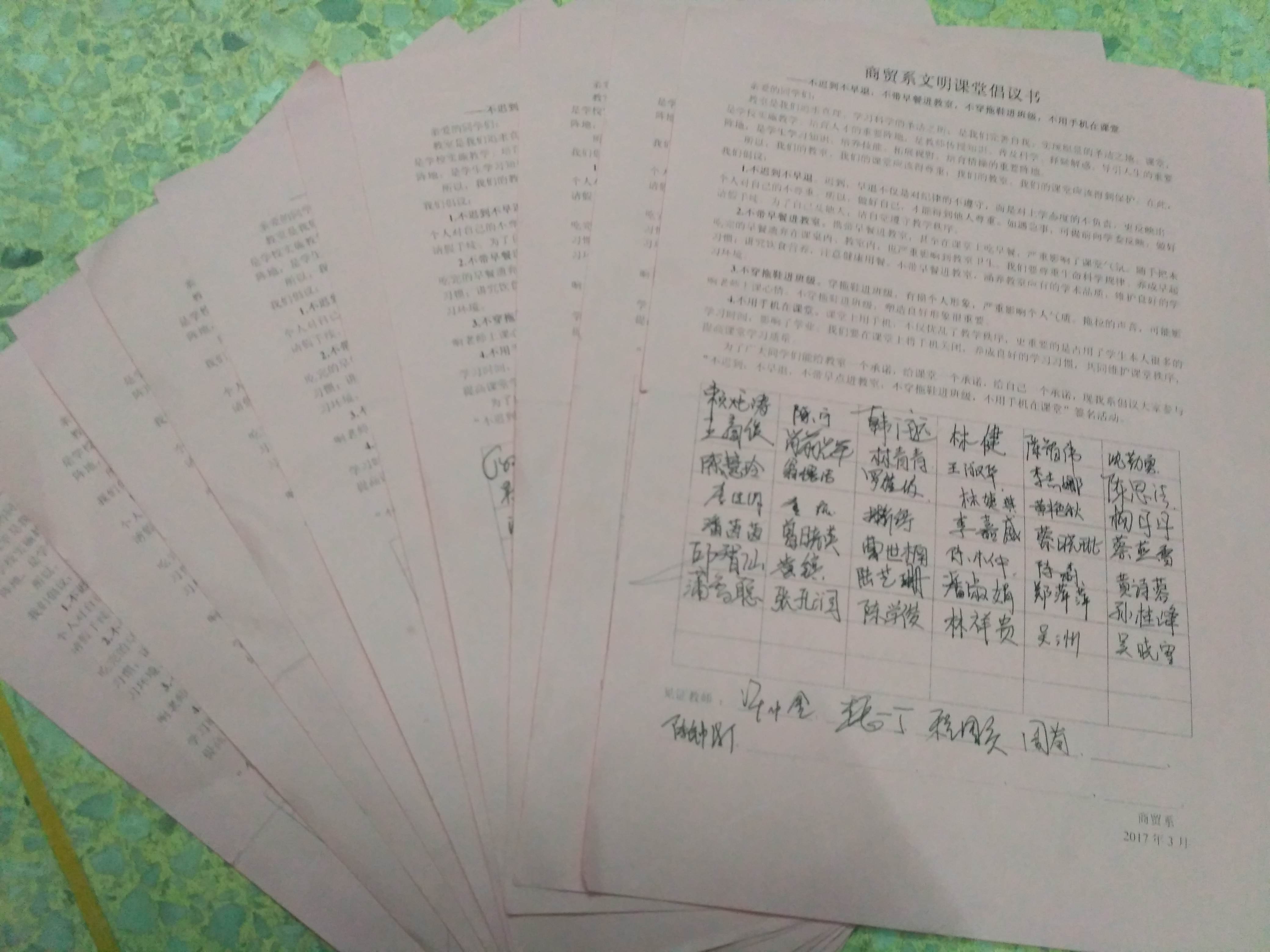 商贸系师生共签“文明校园”、“文明课堂”倡议书
