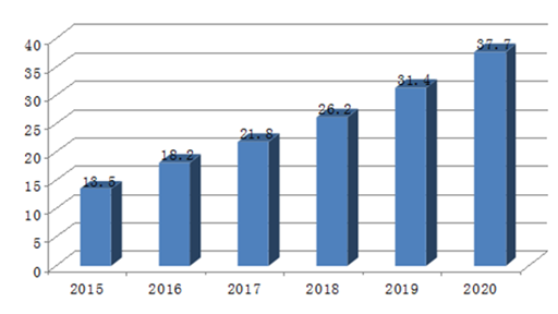 根据当前我国宏观经济的发展趋势,网购人数的迅速扩大,信息产业的快速发展,结合我国电子商务交易额的历史发展规律,预计未来五年我国电子商务的交易额增速在20%左右,到2020年我国电子商务交易额将达到37.7万亿元。