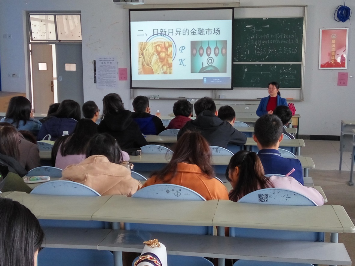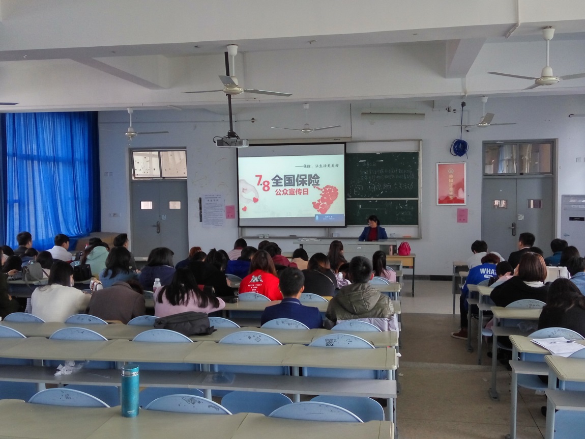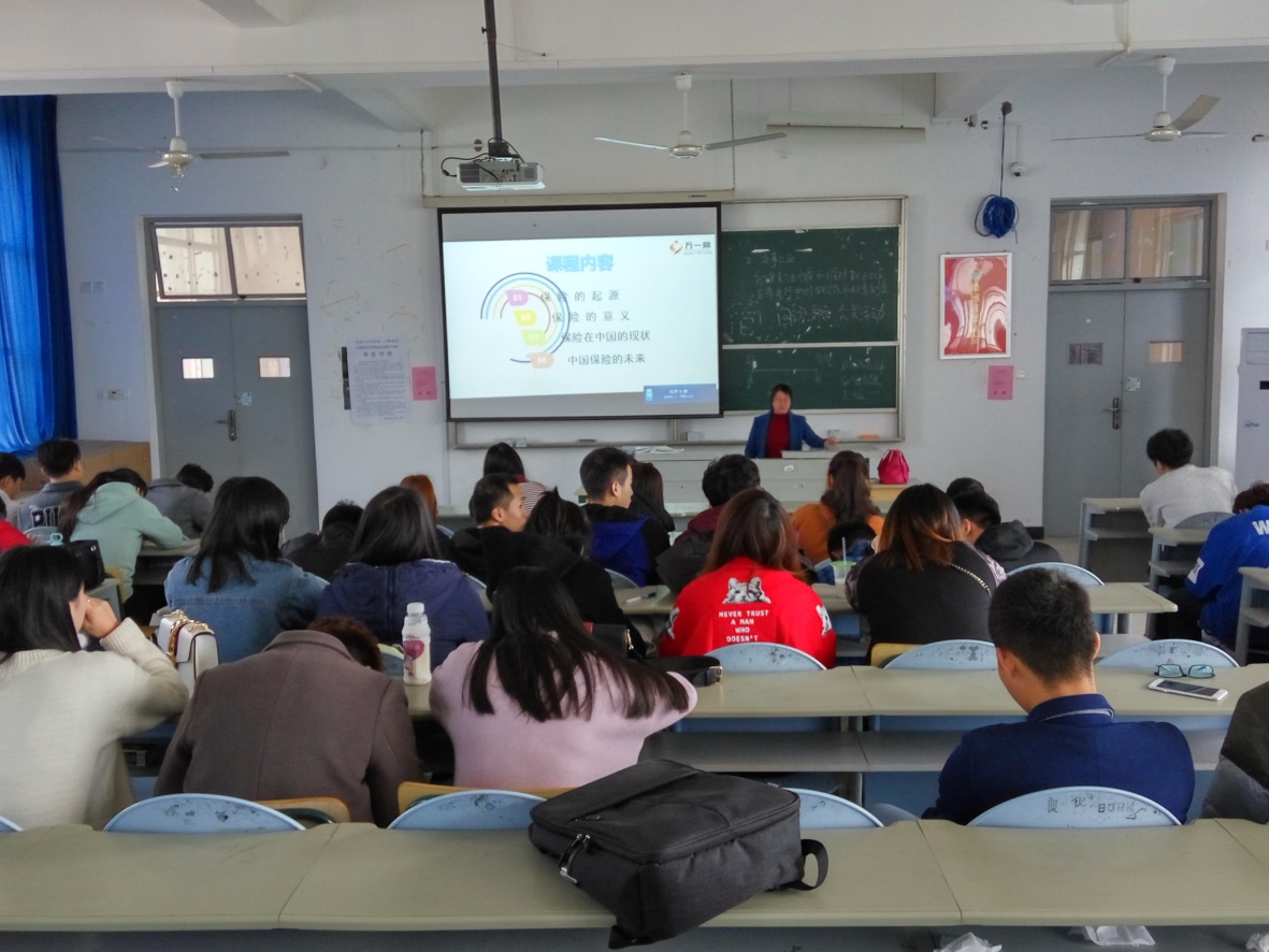 201735,中国人寿保险股份有限公司区部经理张花蕊,到校为电商和市营专业学生作《保险的发展》专题讲座。200多名学生代表和辅导员聆听了讲座。